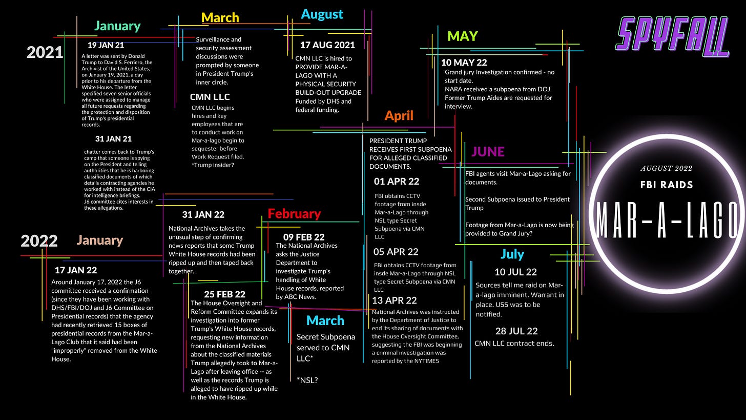 In my investigation of the Mar-a-Lago raid, I pieced together information from various sources to uncover the method used, the unusual timing of the raid, and rumors of an operation planned by the Biden Transition team in December 2020. Despite my efforts, I was still missing a crucial piece of evidence that would connect all the dots. However, fortune smiled on me when a DHS-funded work order fell into my possession, and suddenly everything began to make sense. What had initially appeared coincidental turned out to be a well-planned cover-up. A wiretap had been installed, along with CCTV cameras whose footage is viewed daily by FBI agents in Florida and at a secretive facility in Fairfax, VA, dedicated to monitoring high-value targets. The timing of the operation was clearly strategic.